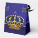 Elegant royal blue and gold prince crown baby shower favour boxes. These beautiful blue and gold prince baby shower favour boxes can be personalised with text and you can change the ribbon colour.