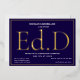 An Ed.D graduation party invitation with gold foil, white text, and a blue background. Simply add your information, add this invitation to your cart, and celebrate this major accomplishment.