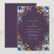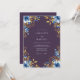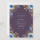 Evoke elegance with this romantic design featuring vibrant blue blossoms and rich golden foliage. Delicate floral details create a whimsical and enchanting atmosphere, perfect for a memorable occasion. The deep purple backdrop enhances the striking contrast of the artistry.