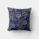 Blue Gold Floral Swirl Cushion
