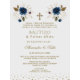 Blue Gold Flowers Boys Twins 1st Birthday Baptism Invitation