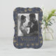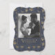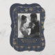 Blue Gold Foil Elegant Floral Photo Wedding Thank Thank You Card