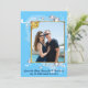 Blue Background with Diamonds and Gold Frame with Bow Image Save the Date Invitation. Convert this for any occasion. Personalise this template with your information and photo.