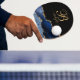 An elegant stylish and chic blue agate geode with gold glitter veins of colour on a ping pong paddle. Your monogrammed design on both sides of the paddle. Stand out in tournaments or friendly games with friends!