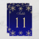 This festive navy and royal blue with gold glittery LOOK (PRINTED - not real) snowflakes table number postcard matches the wedding invitation shown below. ***You MUST change the number 11 to each number that you need, add it to your cart, and then come back and repeat the process with each number that you need. Quantity discounts may apply once you add all the items to your cart. If you have any questions or change requests contact niteowlstudio@gmail.com.