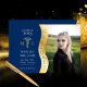 Celebrate your favorite graduating medical school grad with this dark blue and gold tone "Graduate" photo design. The template features a wavy look on the left side with the word "Graduate" on the gold wavy background accompanied by a gold tone outline caduceus with flat gold "M" and "D" to the left and your graduate's class year, name and school in white. Design by Holiday Hearts Designs (rights reserved) with placeholder photo credit to Mike Austin via Unsplash.