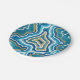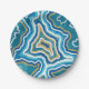Blue, sea green and gold graphic gemstone agate abstract watercolor painting.
