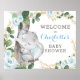 Blue Gold Greenery Elephant Wild One Baby Welcome Poster