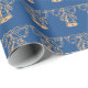 Blue Gold Holiday Christmas Pattern Wrapping Paper