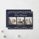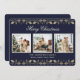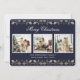 Elegant blue and gold photo Merry Christmas card featuring a photo collage and holly on a dark blue background. Easily personalise this holiday card with your photos and text. The background can be changed to any colour.
