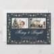 Blue Gold Holly Merry and Bright Photo Holiday Card