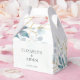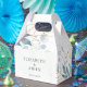 This elegant favor box features a soft white background with watercolor-style blue eucalyptus leaves and delicate gold accents – a timeless choice for romantic, nature-inspired weddings.