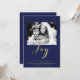 Blue & Gold JOY Holiday New Years Photo Invitation