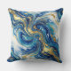 Blue Gold Marble Luxury Decor Fluid Art Pattern Cushion