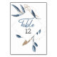 Blue Gold Modern Floral Elegant Wedding Table Number