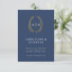 Blue gold monogram wedding directions and schedule enclosure card