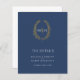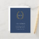 Blue and gold oval of leaves monogram wedding guest information details. Beautiful wedding information leaflet ideal to help your guest understand how to reach your wedding destination and see the schedule, accommodation information, gifting details on the wedding day. Personalise with your own details. Other matching items are also available. If you need help please contact me. © Original art and design by Sarah Trett exclusively for www.mylittleedenweddings.com