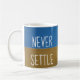 Blue & Gold Motivational Quote NEVER SETTLE Coffee Mug