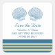 Blue Gold Nautical Seashells Save the Date Square Sticker