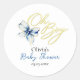 Blue & Gold “Oh Boy” Gold Typography Baby Shower Classic Round Sticker