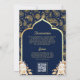 Blue Gold Paisley Floral QR Code Indian Wedding Invitation