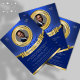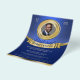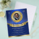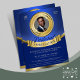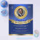 Pastoral appreciation recognition flyer features blue and gold colour tone palette, a customisable gold medal frame image insert, and gold banner as placement for added text. A formal and professional flyer to promote your church and announce your Pastor's appreciation service.