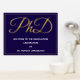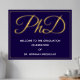 A PhD graduation party welcome sign poster with gold foil, white text, and a blue background. Simply add your information, add this poster to your cart, and celebrate this major accomplishment.