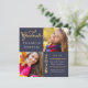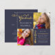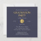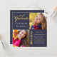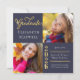 Elegant and classy square blue and gold tone, two photo graduation announcement and party invitation design. Features the word "Graduate" in scripted gold tone text art and the year "2026" in vertical gold tone text art on the front with your photos in opposite corners. Fields are provided for the graduate's name, graduation date, school, college or university and future plans on front. On back is a coordinating graduation party invitation design, also with gold tone accents. Design by Holiday Hearts Designs (rights reserved).