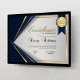 Professional certificate of achievement award design features blue, gold, and grey colours with detailed lines and a gold border. Includes gold medal award and stars.