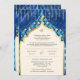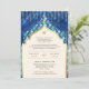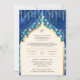 Blue Gold Quatrefoil QR Code Sikh Wedding Invitation