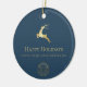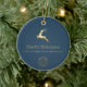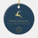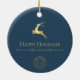 Blue Gold Reindeer Happy Holidays Business Logo Ceramic Ornament