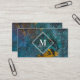 Blue Gold Rust Metallic Texture Monogram Initial Business Card