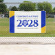 Colleges, universities, high schools, and institutes of higher learning can add sophistication to graduation ceremonies with this modern, contemporary banner, which features elegant lettering set on royal blue, gold, and white backgrounds. Customise with congratulatory message, graduating year, name of school/college/university, academic logo and/or slogan. Colours and font types can be modified as desired.