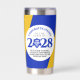 Colleges, universities, high schools, and institutes of higher learning can add sophistication to graduation merchandise with this modern, contemporary tall tumbler, which features elegant lettering set on royal blue, gold, and white backgrounds. Customise with name of school/college/university and academic logo/motto/seal. Colours and font types can be modified as desired. Reverse shows identical design.