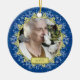 Blue Gold Snowflakes Memorial Photo Christmas Ceramic Ornament