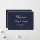 Elegant blue and gold holiday card featuring little stars on a blue background. Easily personalise this blue holiday card with your family name and the year or add extra text to the back of the card.