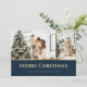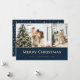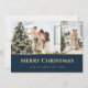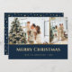 Elegant blue and gold photo Christmas cards featuring two photos on the front and gold stars on a blue background at the back. Easily personalise these modern photo Christmas cards with your images and text.