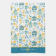 Blue Gold Tea Time Pattern Monogram Tea Towel