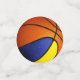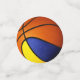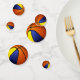The front and back of each piece of this basketball birthday party confetti features the realistic image of a basketball that has two recolored panels. one blue and one gold - by katz_d_zynes