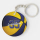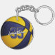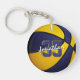 This basketball team colours acrylic keychain for boys or girls features a simple basketball graphic that has recolored alternating blue and gold panels upon which you can easily customise the athlete's name in a signature (or autograph) style font atop the player's jersey number (in a varsity letter style font) - by katz_d_zynes