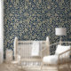Blue & Gold Vintage Floral Pattern Wallpaper