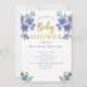 Blue Gold Watercolor Flowers Baby Shower Invitation