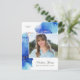 Blue Gold Watercolor Photo Graduation Postcard