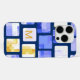 Cool retro blue, gold and white tiled block weird random square pattern decorative design. Personalise with your monogram.