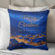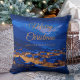 Blue Gold Winter Village Family Christmas Cushion