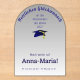 Celebrate academic success with modern elegance! This unique arch-shaped acrylic graduation card features a stylish blue graduation cap with a sleek silver gradient — a contemporary twist on a classic symbol of achievement. Designed in German, this keepsake can be customised with your name, graduation year, or a personal message. Make it truly yours by adding a photo or extra text, and commemorate your big day with a one-of-a-kind memento that reflects your journey and pride.