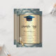 Blue graduation cap, champagne glass on champagne background. This invitation is easily customised for your event by simply adding your details.