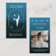 Modern navy blue green turquoise gradient ombre with stars, geometric shapes and yoga pose silhouette Yoga instructor studio teacher business card. Add your photo, logo, social media , address and time schedule.