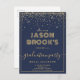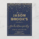 Navy blue graduation invitations with gold glitter, script type and a very unique decorative name typography. Suitable for college or high school graduate.