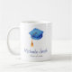 Cute personalise mug with an illustration of a blue graduation cap with a golden tassel. Personalise the text with your own information. Illustrated and designed by Patricia Alvarez.